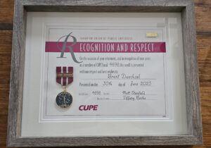 I want to take a moment to thank every member of CUPE Local 4698 for the amazing gift of the recognition of my time representing members of this Local. As you know, I retired from Union Executive work as of July 1, 2025. I spent 35 out of my 36 years to date representing co-workers through Union Executive work in various positions with three different Locals that made us who we are today, culminating with my final term in office as President of CUPE Local 4698.